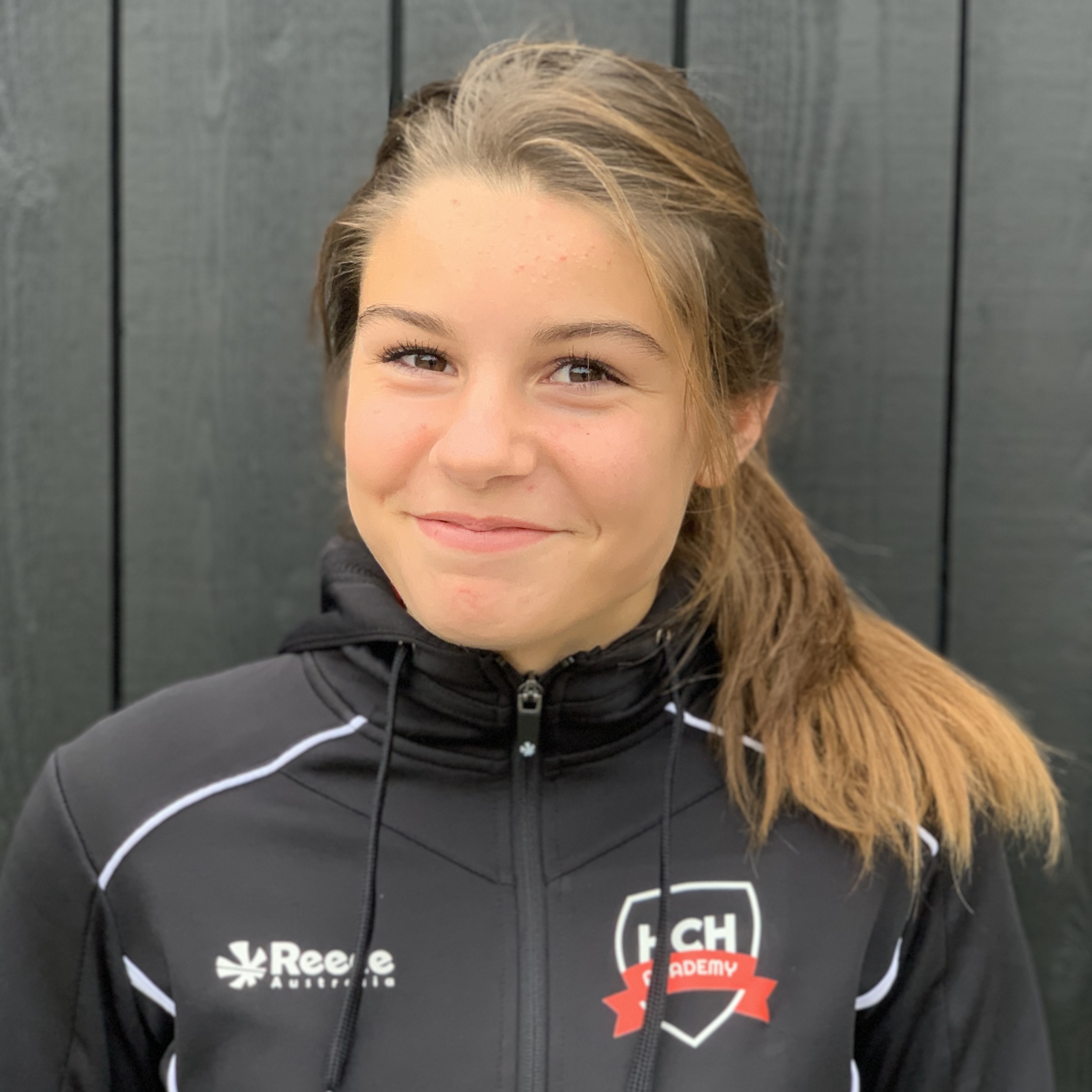 Ondanks dat Madelief de jongste trainer van de HCH Academy is, is ze zeker niet verlegen. Haar gedrevenheid laat ze niet alleen zien als trainer, maar ook als speelster van Hilvarenbeek MB1.